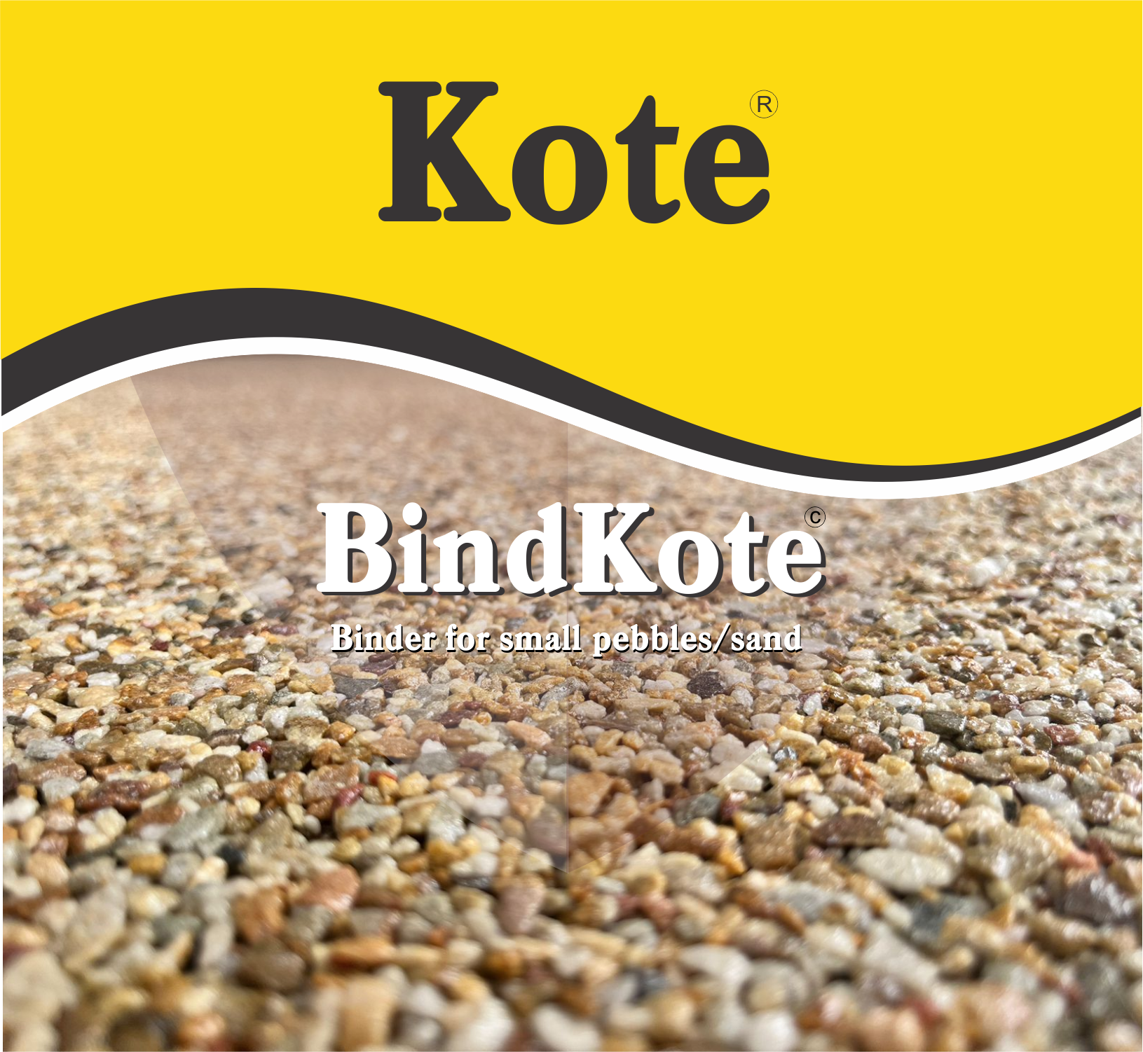 Bindkote is our spray on or over sand and pebbles to secure in place on walkways and in-between concrete pavers.